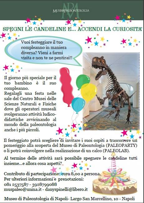 Infatti a Napoli attualmente si può scegliere tra la mostra Dino Babies su cuccioli e uova di Dinosauro a Città della Scienza, e i Musei delle Scienze dell’Università Federico II a via Mezzocannone: proprio qui, da oggi, si potrà giocare e spegnere le candeline con gli antichi amici dei nostri bimbi.