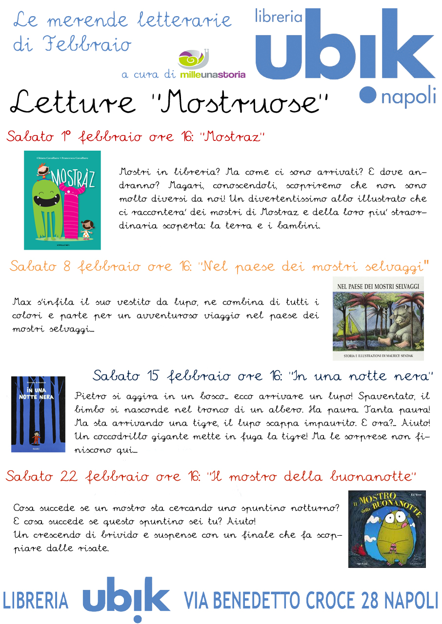 Tornano puntuali le Merende Letterarie sabato 15 febbraio alle ore 16.00 nella Libreria Ubik di Napoli.