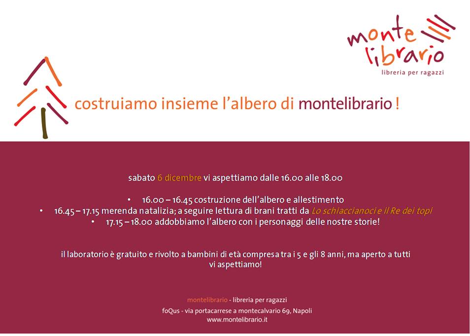 Questo sabato (ore 16.00-18.00) Montelibrario vi aspetta per la costruzione di un albero di Natale “speciale”, lettura e merenda, creeremo poi degli addobbi unici ispirati alle storie