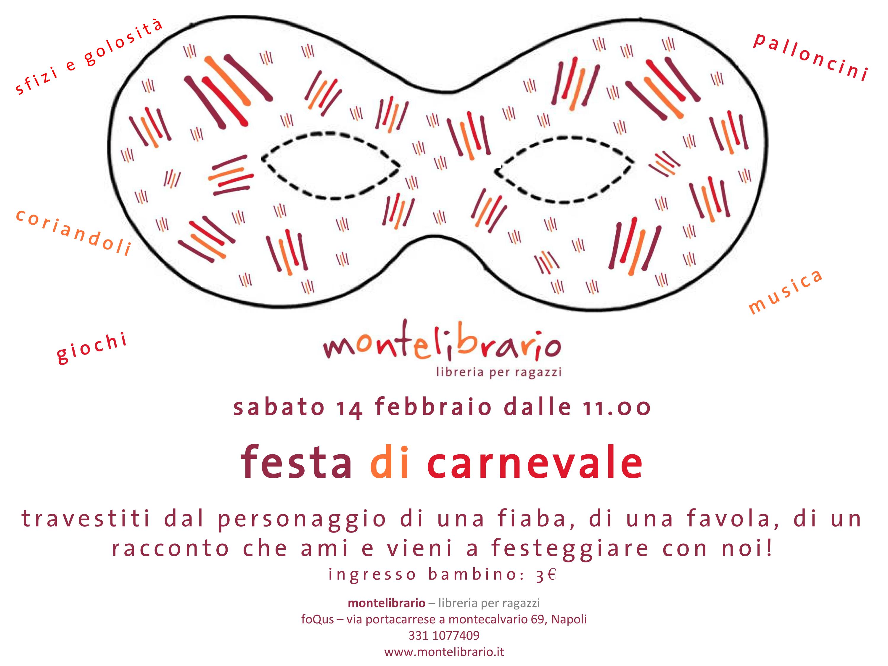 Giochi, creazione di maschere, manipolazione palloncini, musica, coriandoli, sfizi e golosità e tanto altro animeranno questa festa sabato 14 febbraio alle ore 11.00.