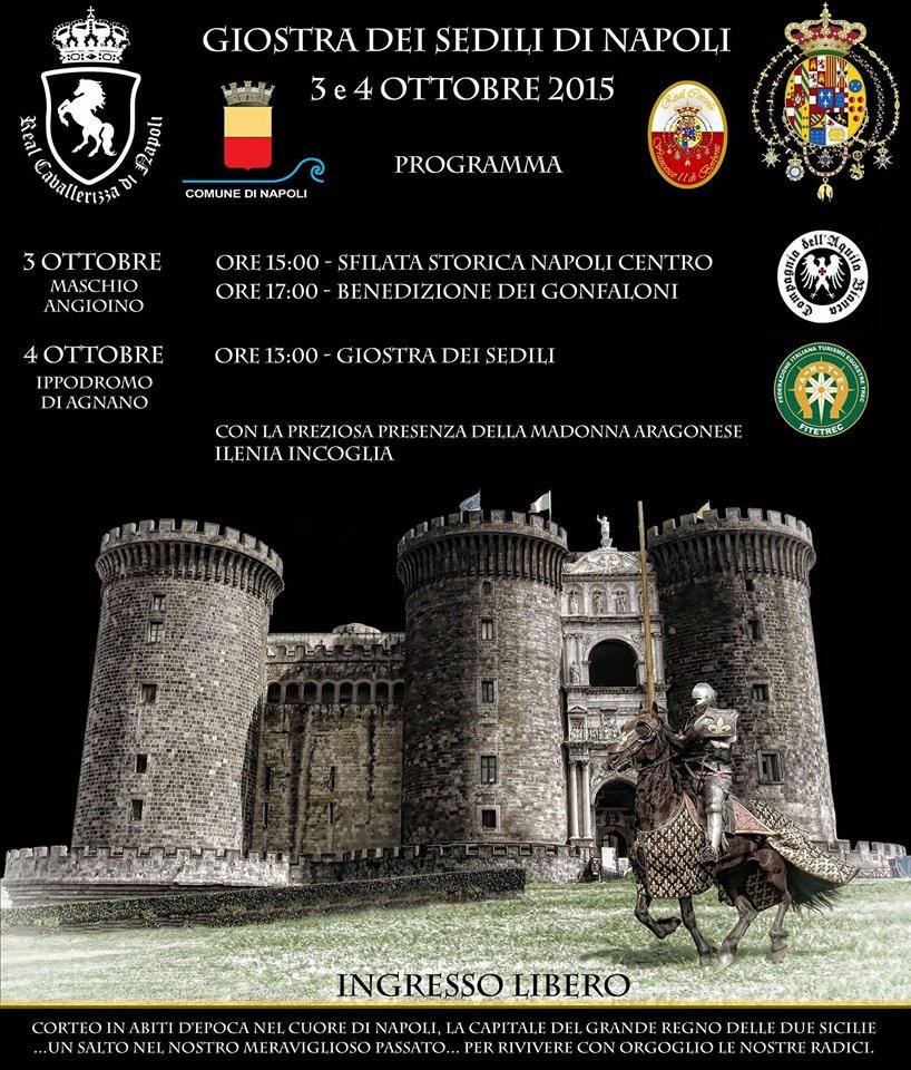 Domenica 4 Ottobre alle 12.00 avrà luogo l’antica Giostra dei Sedili (con cavalieri in armatura) presso l’Ippodromo di Agnano.