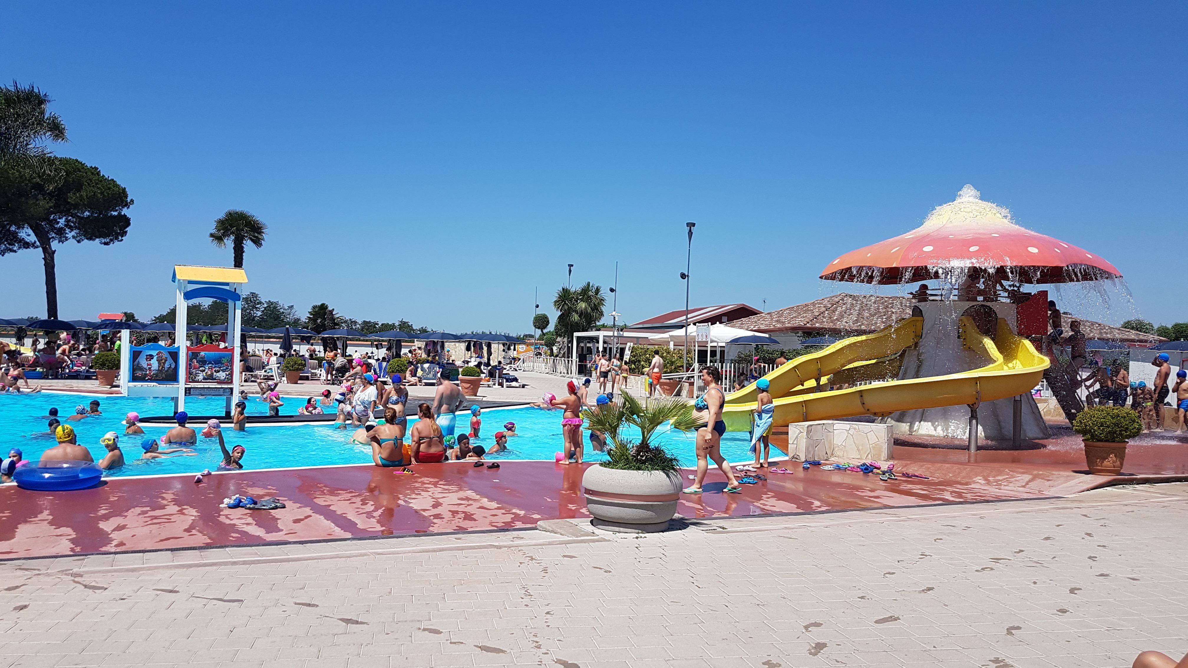 I più piccoli (anche piccolissimi) possono usufruire di 5 piscine con vari scivoli (fungo, cocomero, etc) che sono piaciuti anche ai nostri 9enni.