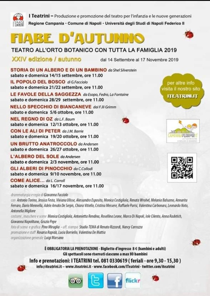 La rassegna dedicata ai piccoli, tra le più longeve in Italia, è ideata e promossa dall’Associazione I Teatrini e realizzata con l’Università degli Studi Federico II in collaborazione con la Regione Campania ed il Comune di Napoli.