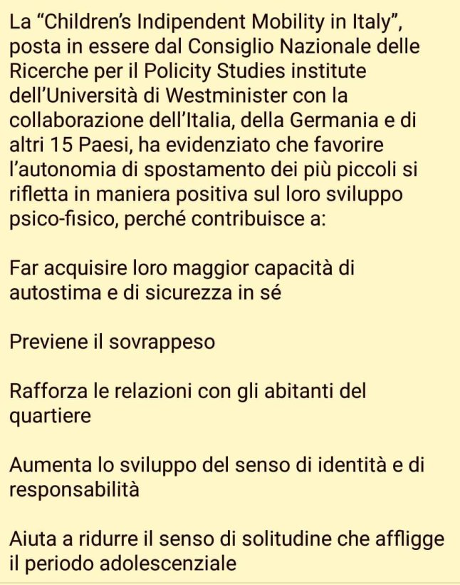 Ma l’importante non è questo: è che qualcuno sta ascoltando la voce dei più piccoli, le Istituzioni non sono sempre sorde e mute come le si dipinge, si vuole forse contribuire ad educare sin da piccoli alla mobilità sostenibile, incentivando un risparmio economico per le famiglie, che può a sua volta tradursi in un beneficio per la salute di tutti!