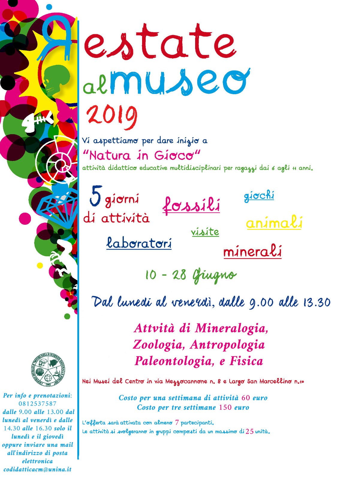 - Durata visita mostra + laboratori: Dai 90 minuti per i più piccoli alle due ore per i più grandi.