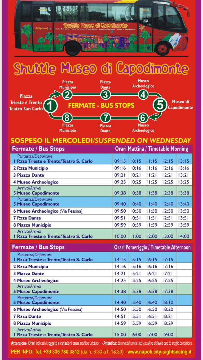 E non dimentichiamo che il bus rosso ferma anche a Piazza Dante e Museo Archeologico Nazionale perciò potete fermarvi lì se volete!