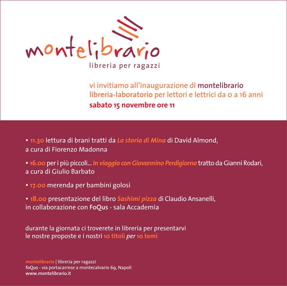 Si inaugura domani sabato 15 novembre una nuova libreria per ragazzi (0-16 anni) a Montecalvario: “Montelibrario”.